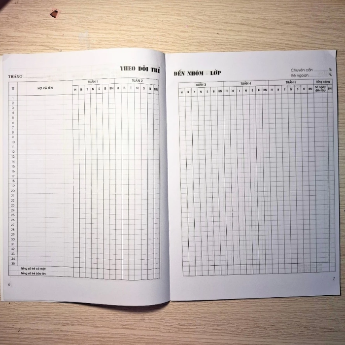 Sổ Theo Dõi Trẻ – Điểm Danh là tài liệu không thể thiếu trong công tác quản lý lớp học mầm non, hỗ trợ giáo viên ghi chép, theo dõi sĩ số trẻ hàng ngày một cách khoa học và hệ thống.