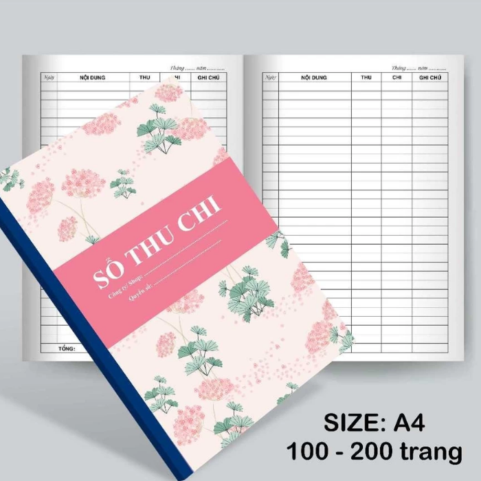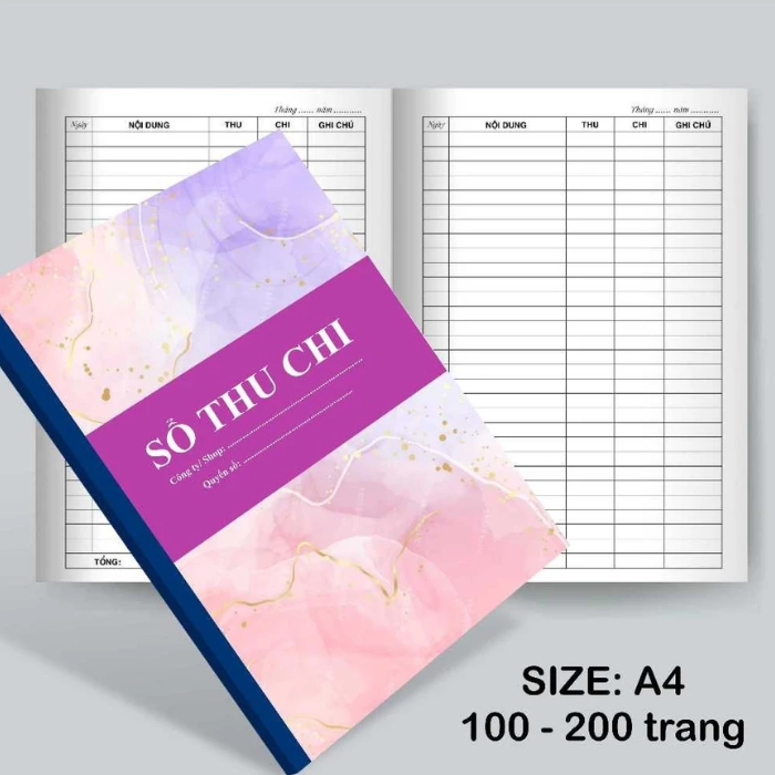 Sổ Thu Chi Mẫu Bìa Đẹp Dễ Thương A4 - Đóng Dọc - In 2 Mặt