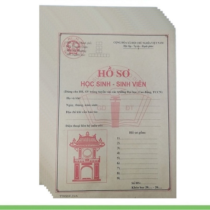 HSHSSV Hồ sơ học sinh sinh viên 100 b/Tập được thiết kế đặc biệt để lưu trữ thông tin hồ sơ.