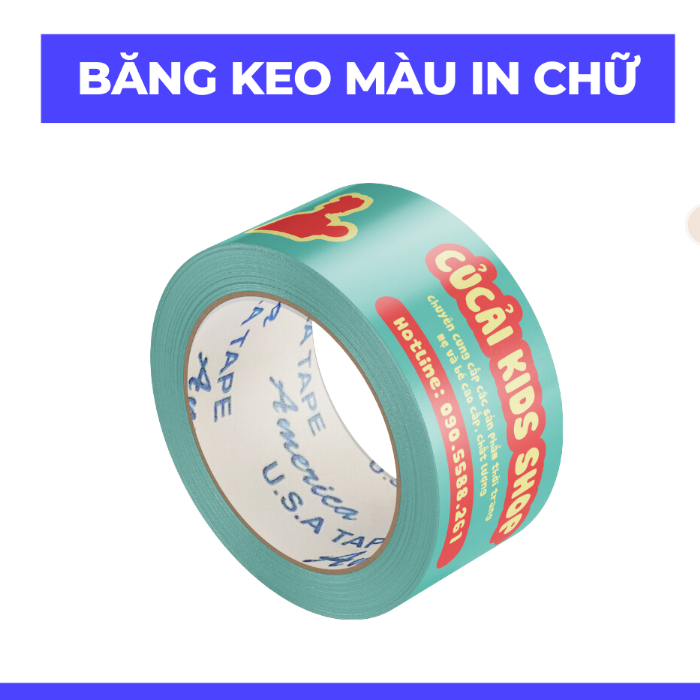 Băng keo màu in chữ, in logo là loại băng keo có thể tùy chỉnh về màu sắc, kích thước và nội dung in ấn (chữ, logo, hình ảnh). Không chỉ được sử dụng trong đóng gói hàng hóa, sản phẩm này còn giúp tăng nhận diện thương hiệu, tạo ấn tượng mạnh mẽ với khách hàng.