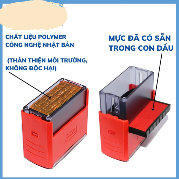 Mặt khắc con dấu: Chất liệu polymer công nghệ Nhật Bản (thân thiện môi trường, không độc hại,