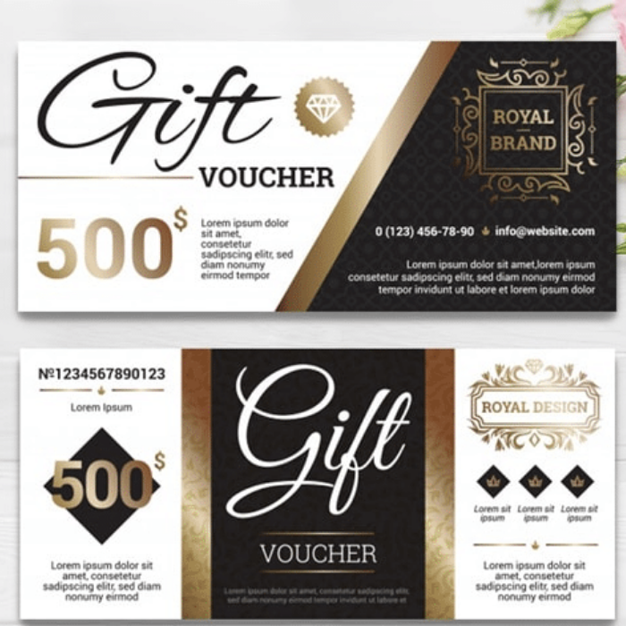 Gift Voucher thường được thiết kế dưới kích thước 8x19 cm, nắp 4cm - một kích thước vừa phải, vừa chứa đựng đầy đủ thông tin vừa nhỏ gọn có thể bỏ vào túi, ví.
