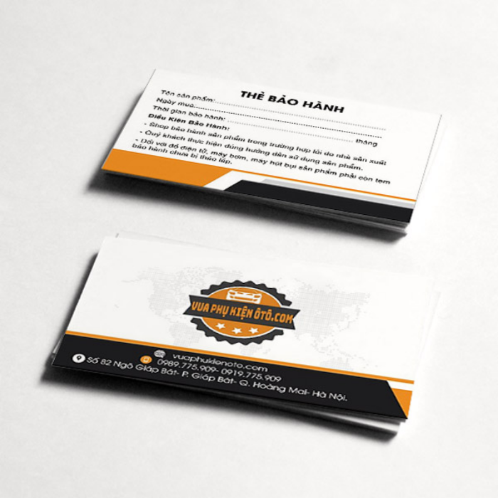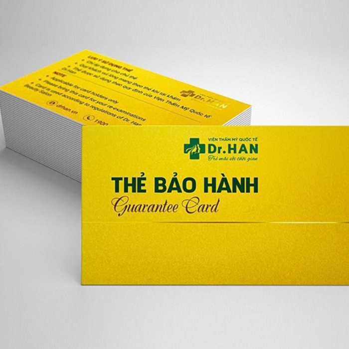 Thẻ bảo hành được in trên chất liệu PVC dày, dễ dàng sử dụng, không thấm nước và có độ bên cơ học cao.