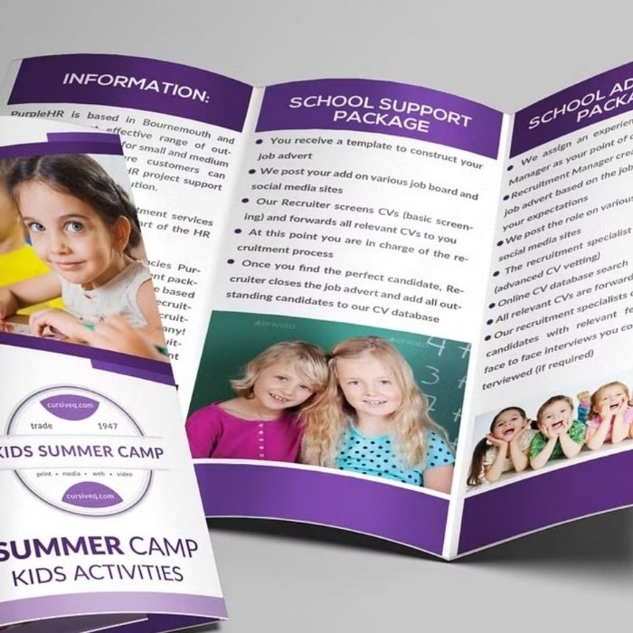 Brochure Quảng Bá Hình Ảnh Trường Học là ấn phẩm truyền thông giúp giới thiệu toàn diện về cơ sở vật chất, đội ngũ giáo viên, chương trình đào tạo và giá trị thương hiệu của nhà trường. Với thiết kế hiện đại, hình ảnh chân thực và nội dung ấn tượng, brochure giúp tăng độ uy tín và thu hút phụ huynh – học sinh hiệu quả.