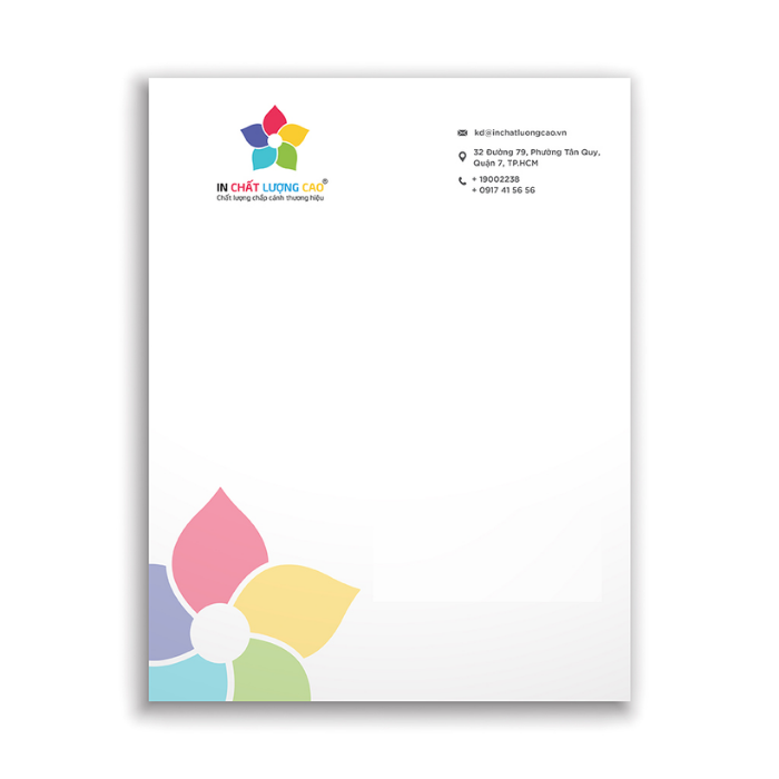 In giấy tiêu đề , In Letterhead là một phần cấu thành nên hình ảnh thương hiệu, vậy nên mỗi Doanh nghiệp cần có sự đầu tư đúng mực. Khi đối tác hay khách hàng của bạn nhận được một lá thư với trang bìa được thiết kế đẹp mắt thì đây là một cơ hội để tiếp thị, cũng chính là hình ảnh đẹp cho sự cam kết thương hiệu, thể hiện sự uy tín trên mỗi dòng thông tin bạn muốn truyền tải đến khách hàng.