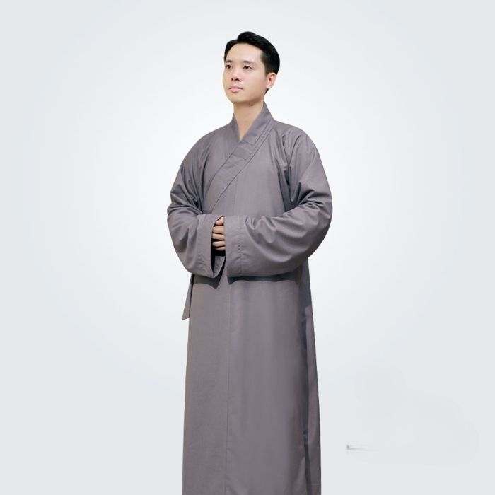 Áo Tràng Lót Lông Màu Xám – Thiết kế ấm áp, trang nghiêm với lớp lót lông mềm mịn giữ nhiệt hiệu quả trong mùa lạnh. Màu xám thanh tịnh, phù hợp cho Phật tử mặc khi dự lễ, tụng kinh hoặc hành hương, vừa thể hiện sự trang trọng vừa mang lại cảm giác thoải mái.