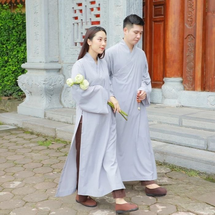 Áo Tràng Phật Tử – Thiết kế trang nghiêm, giản dị, tượng trưng cho lòng thành kính và tâm thanh tịnh của người con Phật. Chất liệu vải mềm nhẹ, dễ mặc, phù hợp cho các buổi lễ, tụng kinh, hành hương hoặc sinh hoạt đạo tràng.