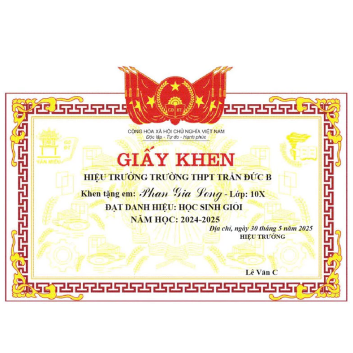 Giấy khen học sinh in theo yêu cầu TH THCS THPT