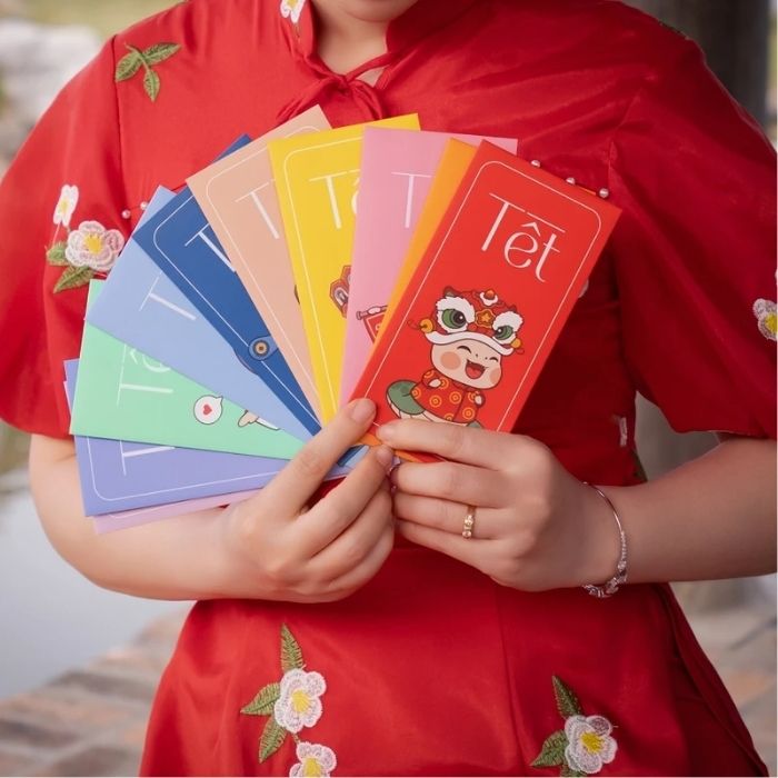 - Sản phẩm gồm 1 xấp 10 chiếc bao lì xì thiết kế độc quyền Tết 2024