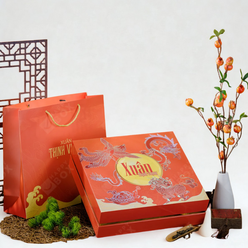 Hộp quà Tết là món quà lý tưởng để các doanh nghiệp gửi tặng đối tác, khách hàng hay nhân viên trong dịp Tết. Với dịch vụ in logo doanh nghiệp lên bề mặt hộp, doanh nghiệp có thể dễ dàng quảng bá thương hiệu và tạo dựng mối quan hệ lâu dài với khách hàng.