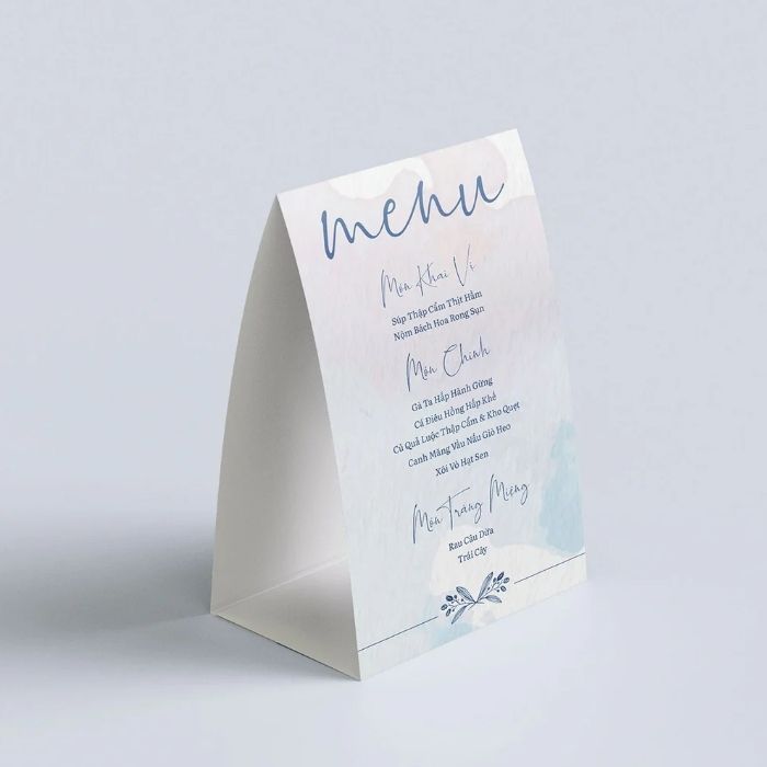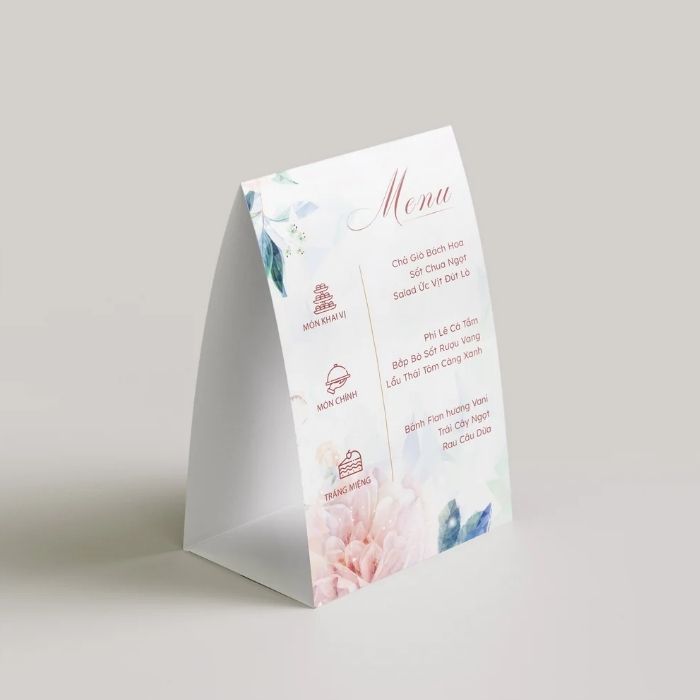 Menu sự kiện doanh nghiệp được thiết kế chuyên nghiệp và tinh tế, giúp tôn vinh hình ảnh thương hiệu trong mọi buổi tiệc, hội nghị hay gala. Với chất liệu cao cấp, in ấn sắc nét và bố cục hiện đại, mẫu menu này mang đến trải nghiệm sang trọng, đồng thời thể hiện sự chỉn chu và đẳng cấp của doanh nghiệp trước đối tác và khách mời.