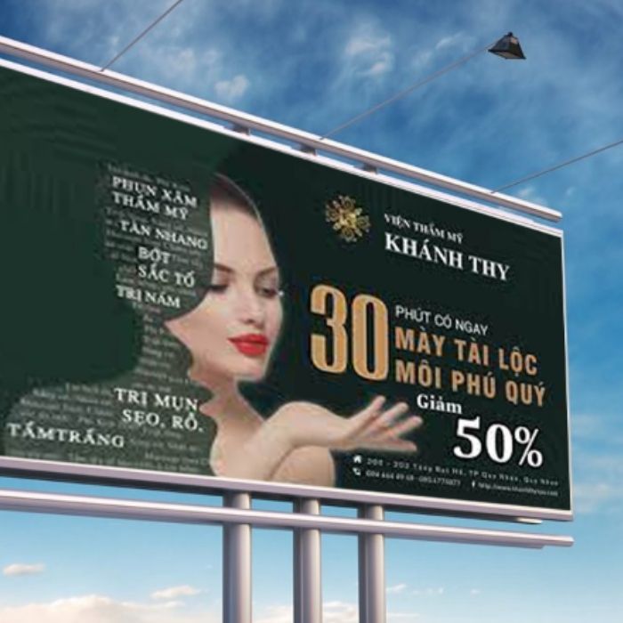 Sản phẩm được in trên chất liệu bạt Hiflex hoặc Backlit cao cấp, chống nắng mưa, bền màu, và thể hiện hình ảnh sắc nét dù ở khoảng cách xa. Đội ngũ thiết kế chuyên nghiệp đảm bảo mỗi billboard đều mang phong cách độc đáo, hiện đại và phù hợp với nhận diện thương hiệu.