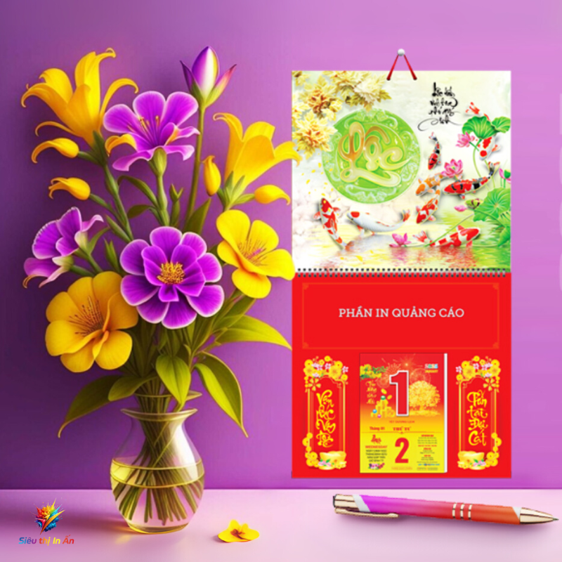 Bìa: Sử dụng loại bìa cứng cao cấp với độ dày tiêu chuẩn (khoảng 2mm), tạo cảm giác chắc chắn, sang trọng và bảo vệ tốt cho ruột sổ. Bìa thường được bọc bằng giấy Kraft hoặc giấy mỹ thuật, dễ dàng in ấn các họa tiết Tết truyền thống.