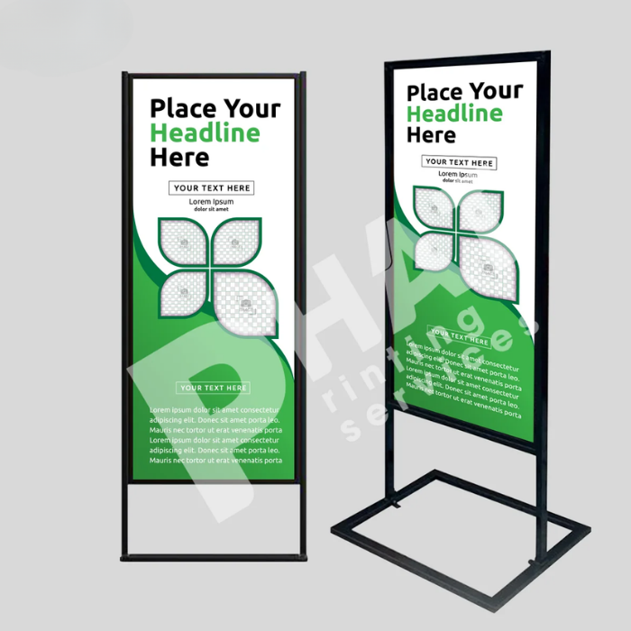 Standee Khung Sắt là một sản phẩm quảng cáo được thiết kế từ khung sắt hộp chắc chắn, kết hợp với hình ảnh in trên chất liệu PP bồi fomex, tạo nên bảng hiển thị chuyên nghiệp và thu hút sự chú ý.