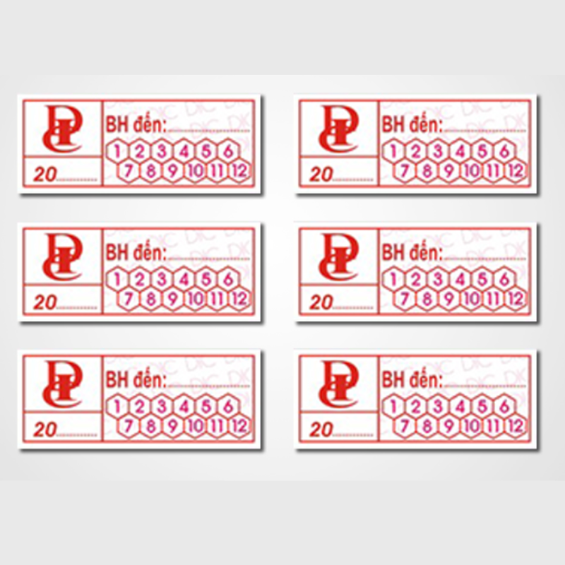 -Thứ 2, tem bảo hành có nhiều hình dạng và kích thước khác nhau. Điển hình như tem hình tròn, tem hình elip, tem chữ nhật…