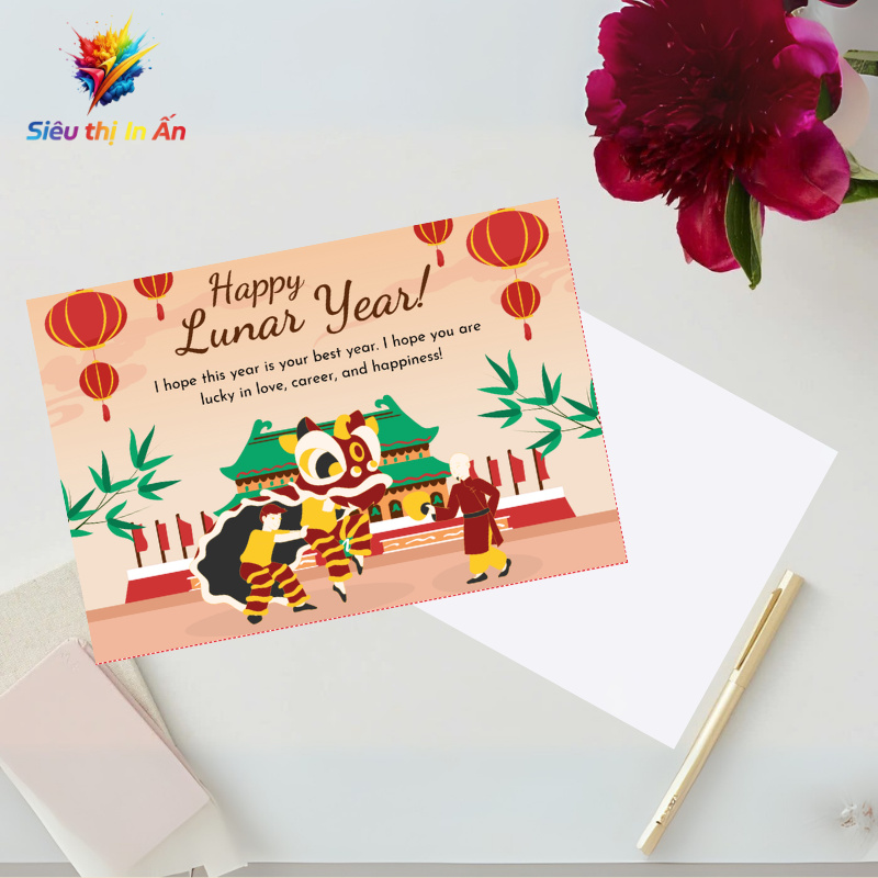 - Thiệp chúc mừng năm mới có in logo của doanh nghiệp là cách để ghi lại dấu ấn thương hiệu doanh nghiệp bạn trong lòng khách hàng/đối tác.