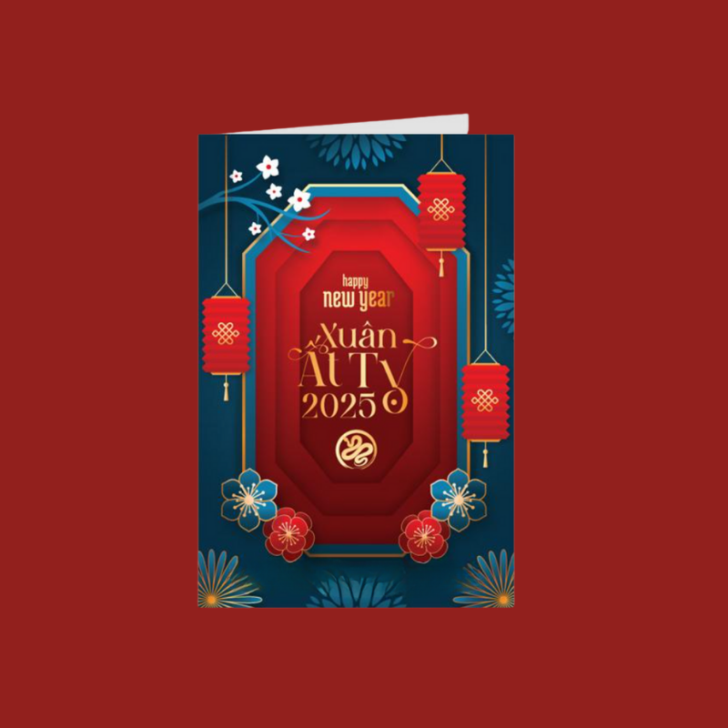 - Thiệp Tết, thiệp Chúc mừng năm mới là thiệp gập, mặt trong thiệp để trắng để bạn ghi lời chúc hoặc in logo doanh nghiệp