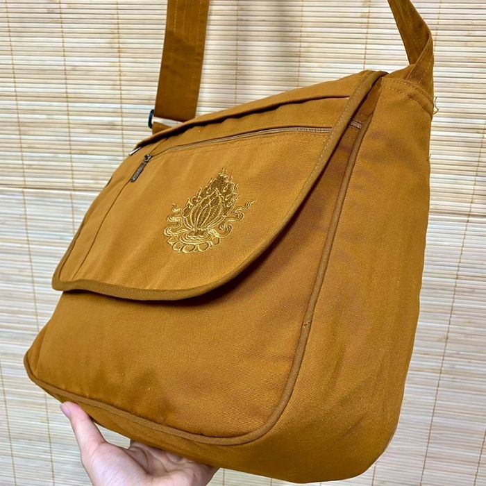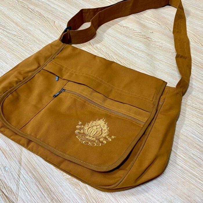 Túi Tay Nải Như Ý – Mẫu túi mang đậm nét truyền thống Phật giáo, thiết kế gọn gàng với họa tiết biểu tượng may mắn và an lành. Chất liệu vải mềm bền, thích hợp cho Phật tử sử dụng khi đi chùa, hành hương hoặc làm quà tặng tâm linh ý nghĩa.